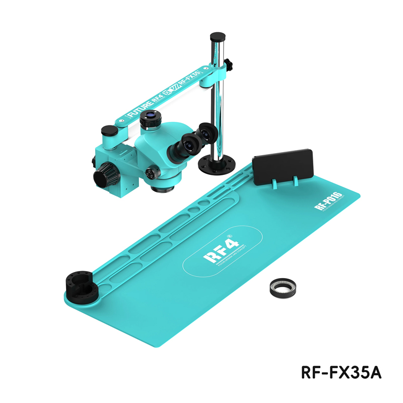 RF4 RF-FX35A 7-50x Free Swing Fixed Trinocular Microscope with RF-PO16 Silicone Pad Long Version EU Plug