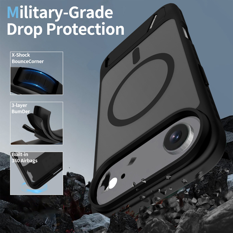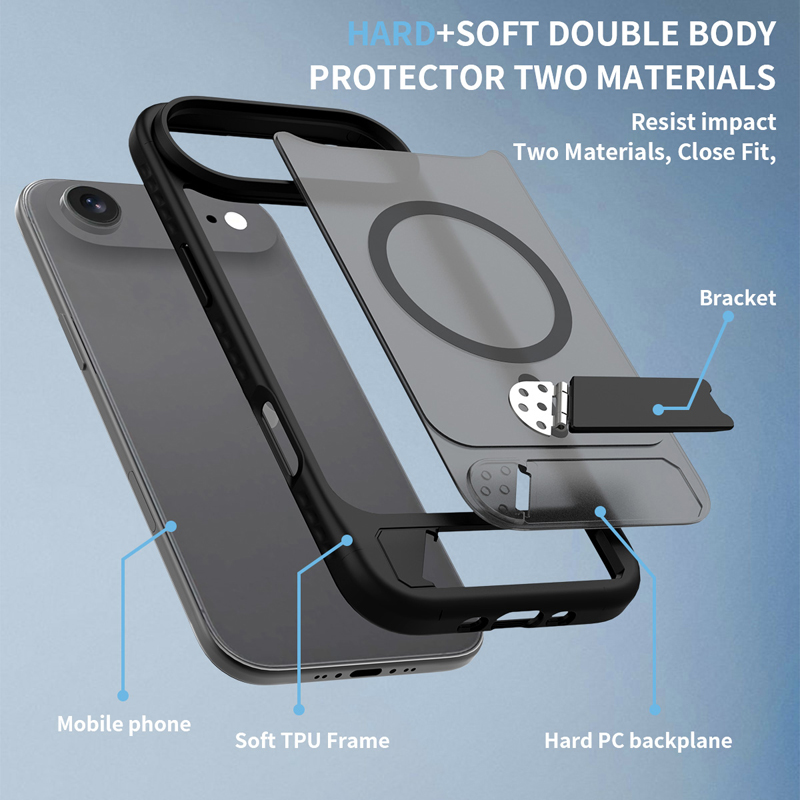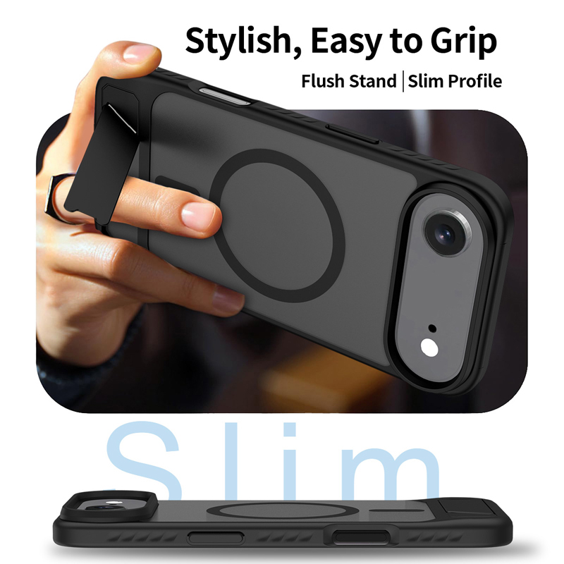 - Skin Feel Magnetic Anti-drop with Adjustable 45° Stand TPU + PC Case for iPhone Air Black