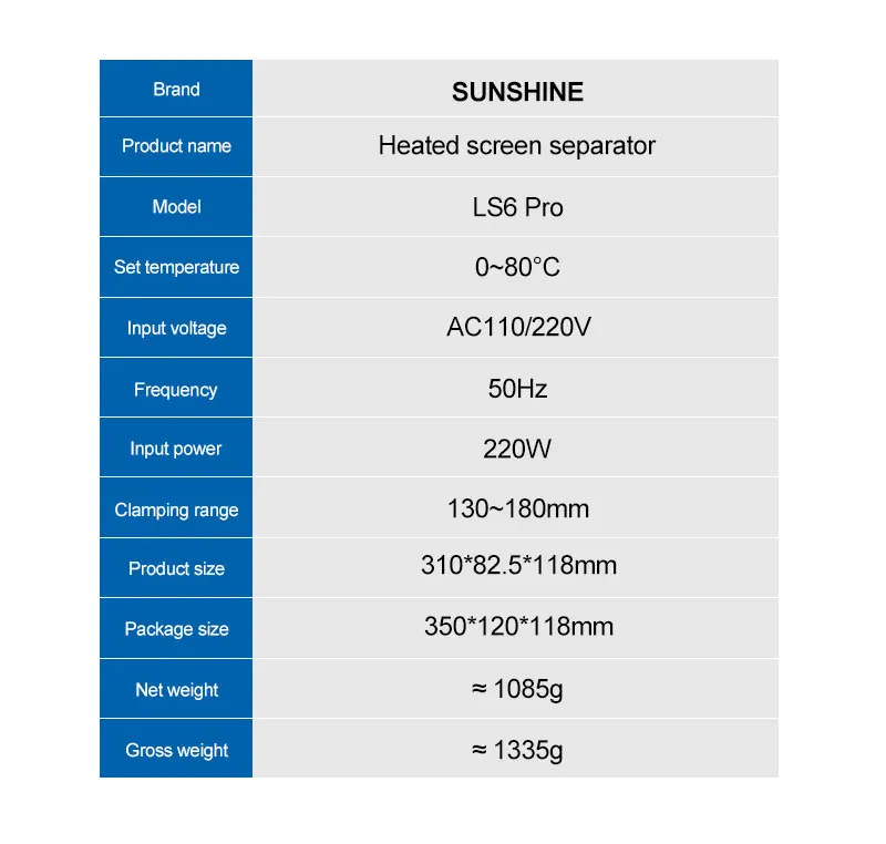 SUNSHINE LS6 Pro Universal LCD Screen Heated Separator for Disassembling Mobile Phone Screen/Back Cover 220V EU Plug