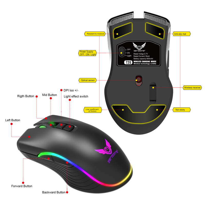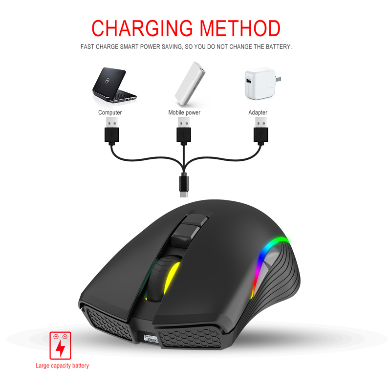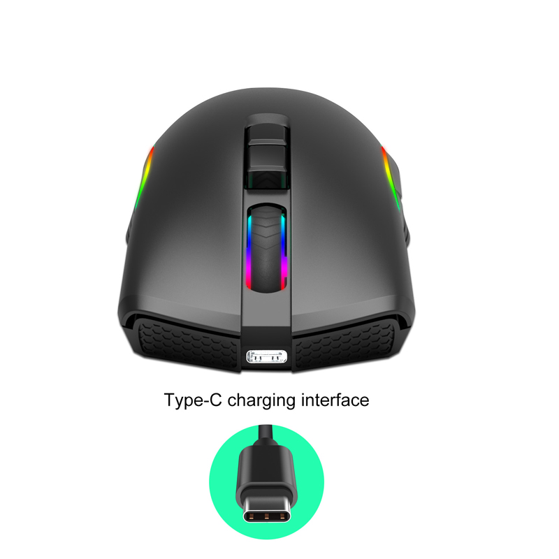 T26 Wireless Mouse 2.4G Type-C Interface Rechargeable Seven-button Gaming Mouse Black