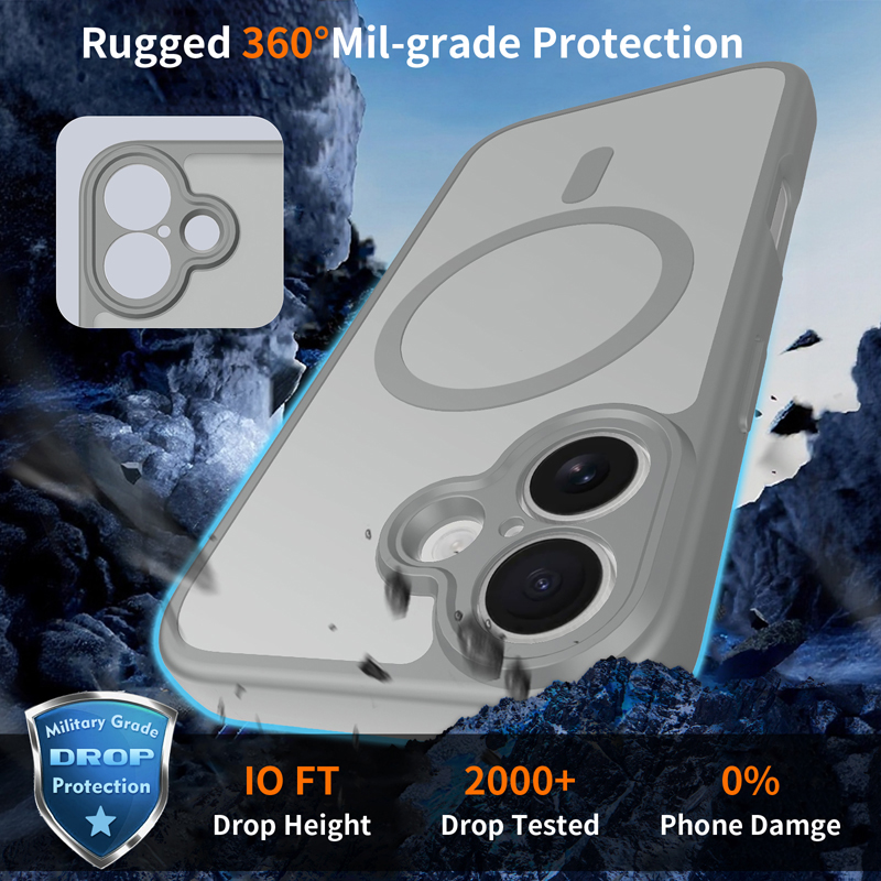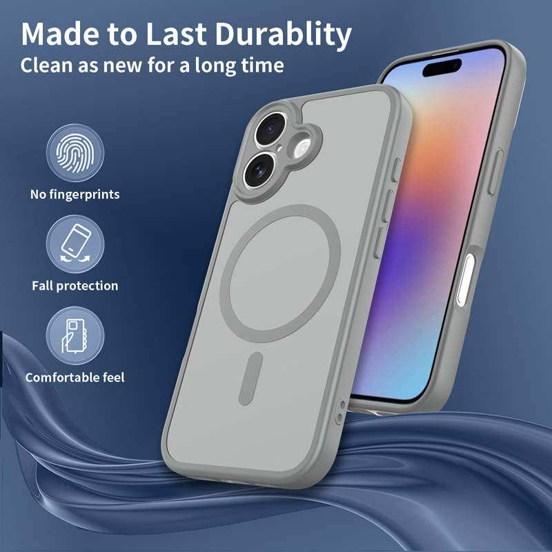 - Upgraded Camera Hole Skin Feel Magnetic Drop-Proof Case for iPhone 17 Gray